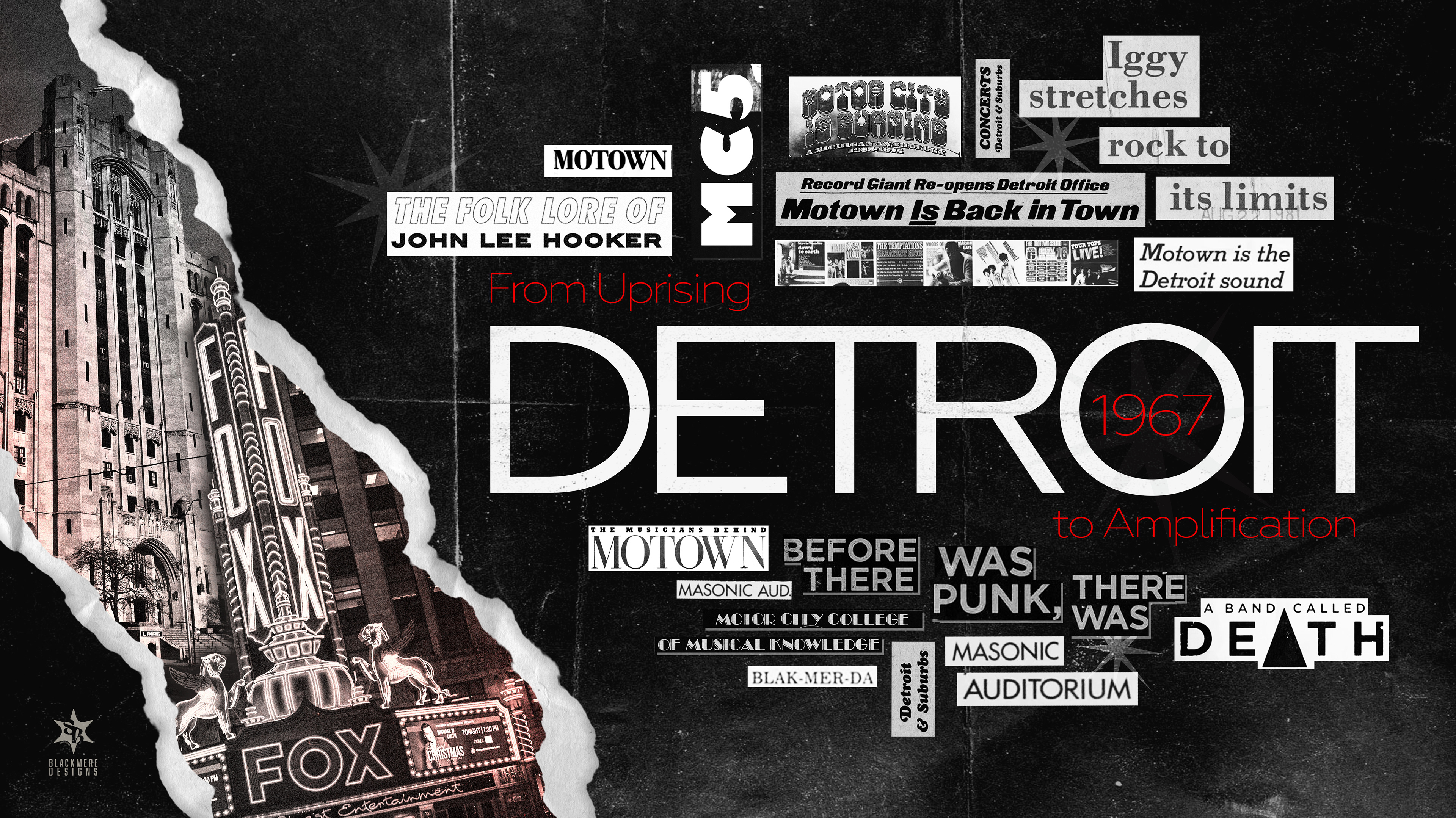 This piece translates complex historical themes into a cohesive digital collage. To reflect the article’s focus on the 1967 Uprising, I integrated architectural icons like the Fox Theatre and the masonic temple. using archival newspaper assets and heavy textures reflects the "amplification" of Detroit’s social climate. The result is a gritty, atmospheric tribute to the evolution of Black Rock and the city's enduring industrial spirit.