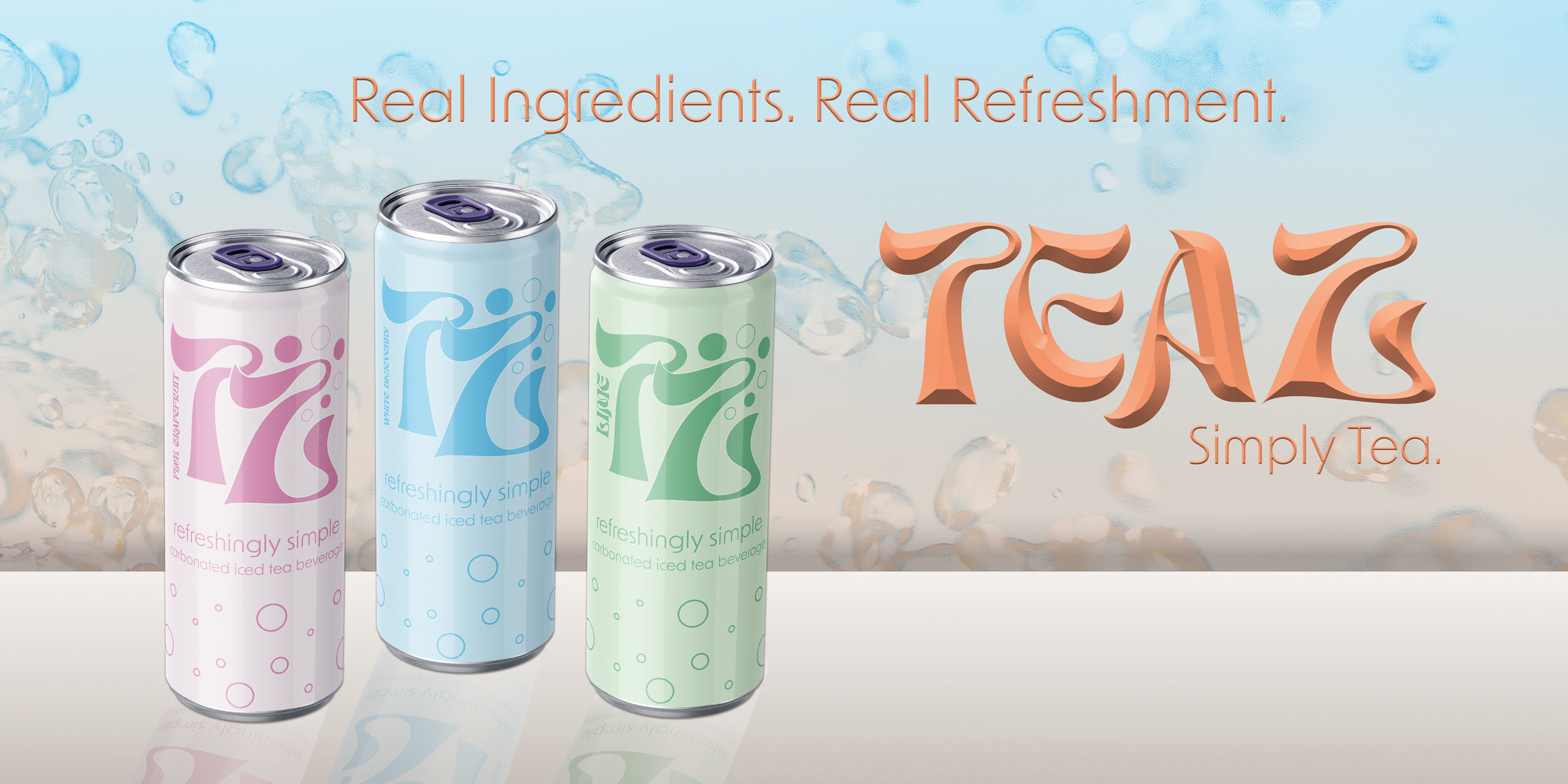 A conceptual brand identity was developed for Teaz, an all-natural carbonated tea company, combining a typography-focused logo with complementary design elements to create a strong, cohesive, and memorable brand presence.